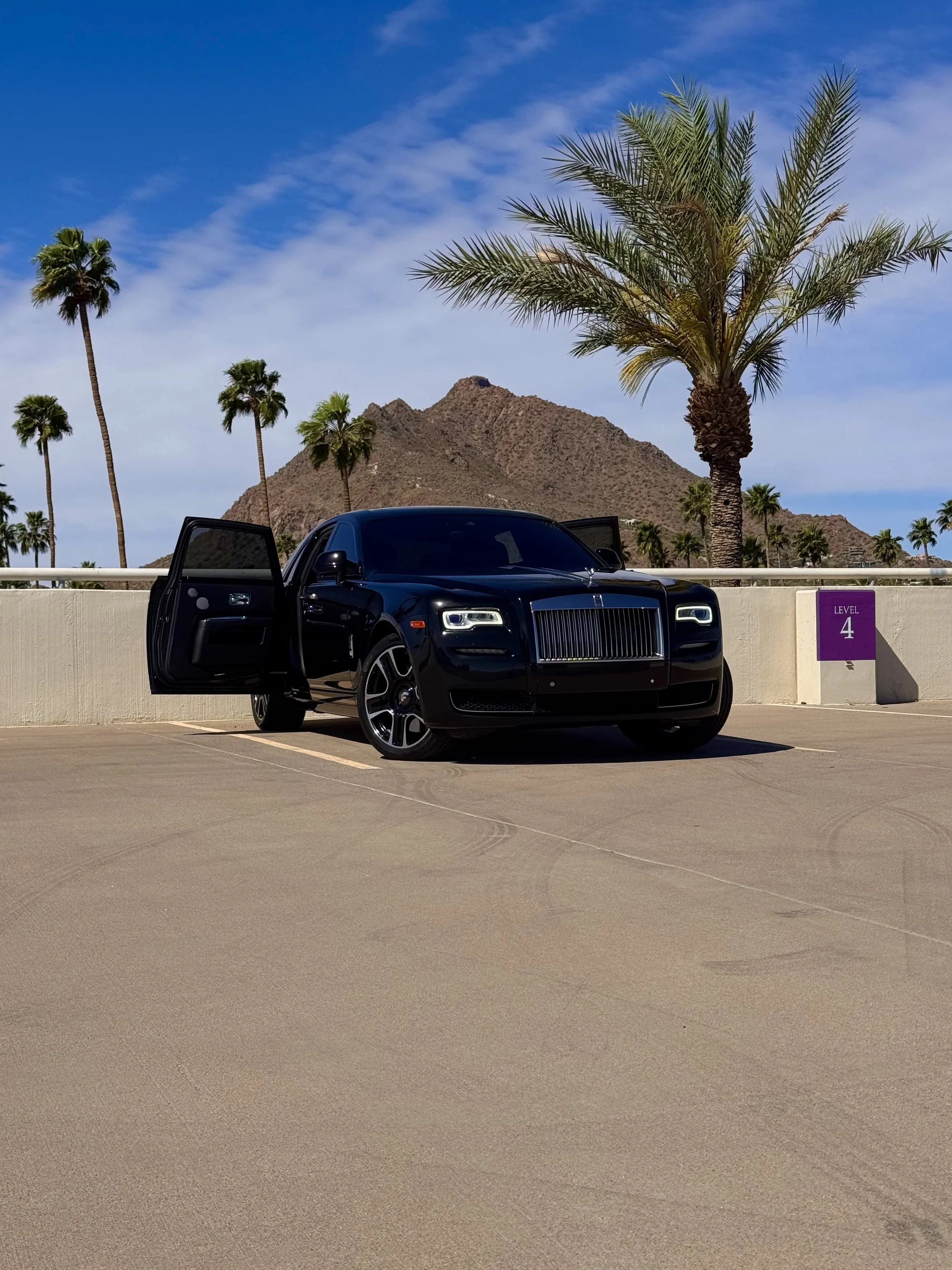 This car is built for those who value prestige, sophistication, and an unmatched luxury experience. Rear-hinged coach doors open to reveal an expansive cabin designed for comfort and elegance, with plush seating, ambient lighting, and technology seamlessly integrated into the design. Whether you’re heading to a luxury dinner, a high-end event, or simply enjoying a refined drive through Scottsdale, the Ghost delivers a level of class few vehicles in the world can match.